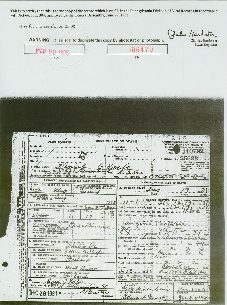 Larry's John and Johanna (nee Milan) Keefe/O'Keefe's Family Page