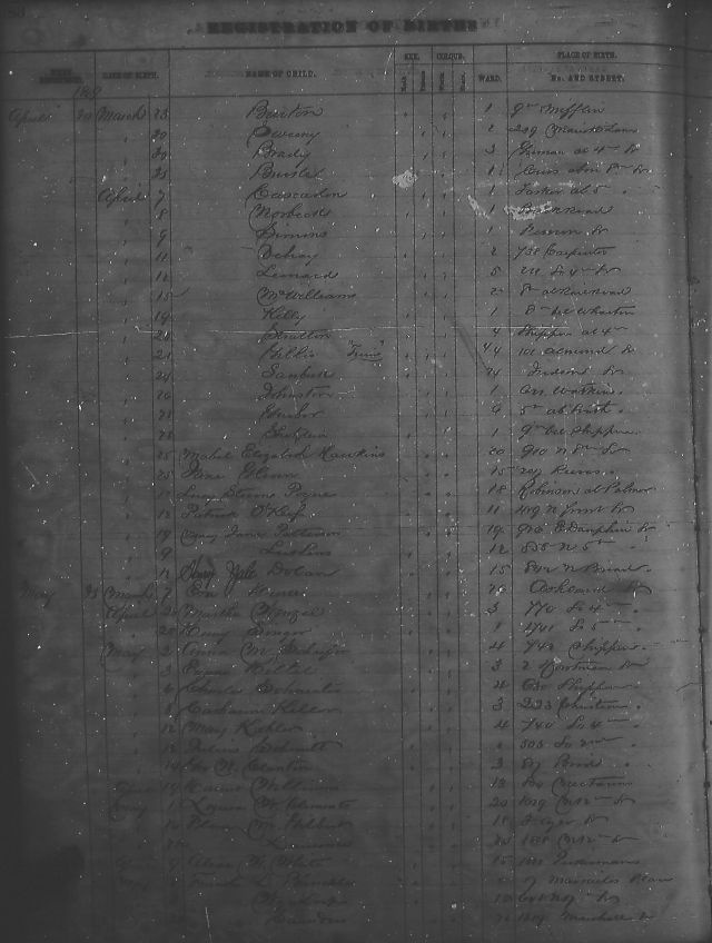 Note 1: Patrick Keefe/O'Keefe's birth is recorded on page 83 of the 1869 Birth Register for the city of Philadelphia, PA.