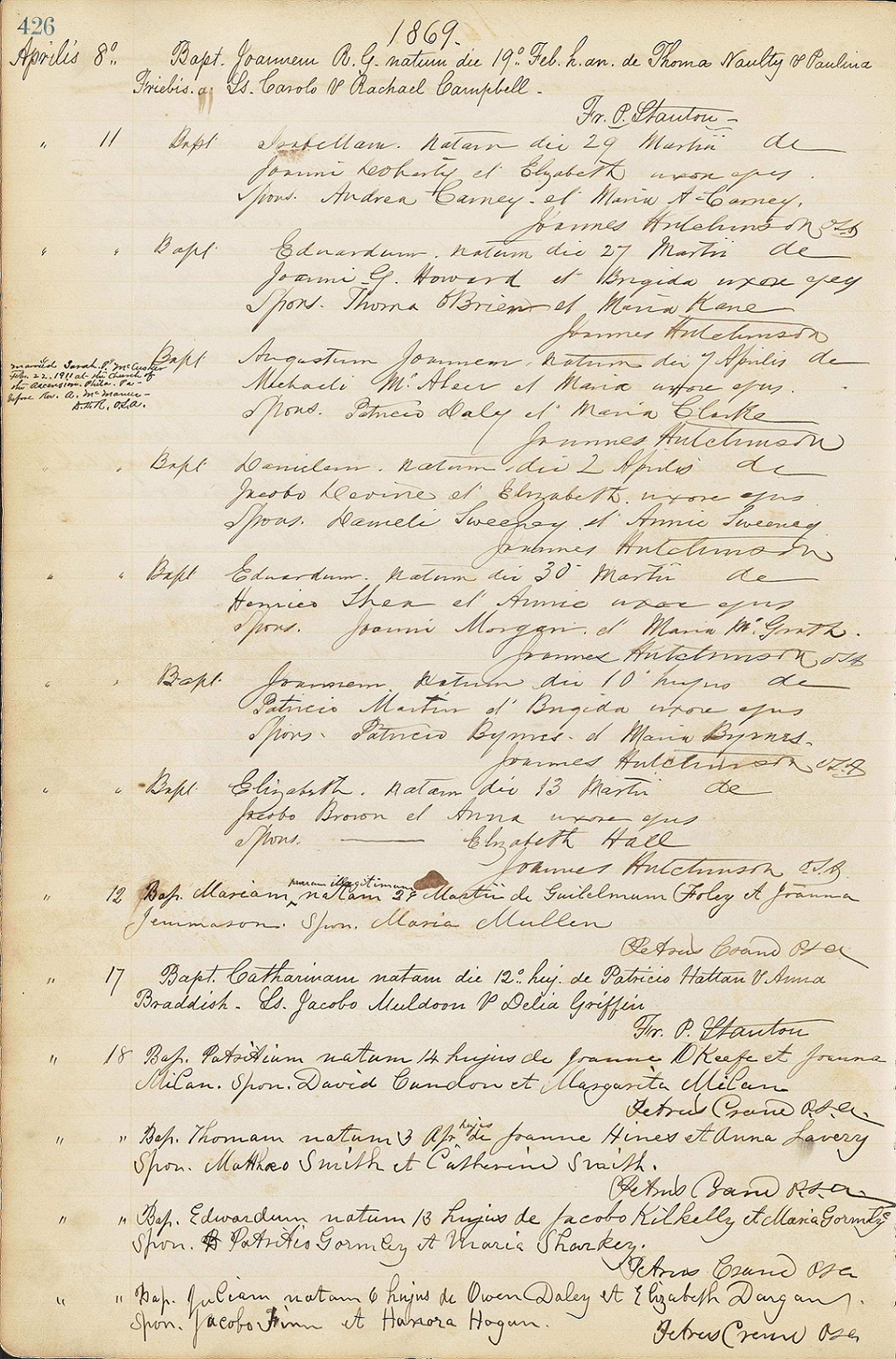 Baptized Sunday, April 18, 1869 - Philadelphia, PA