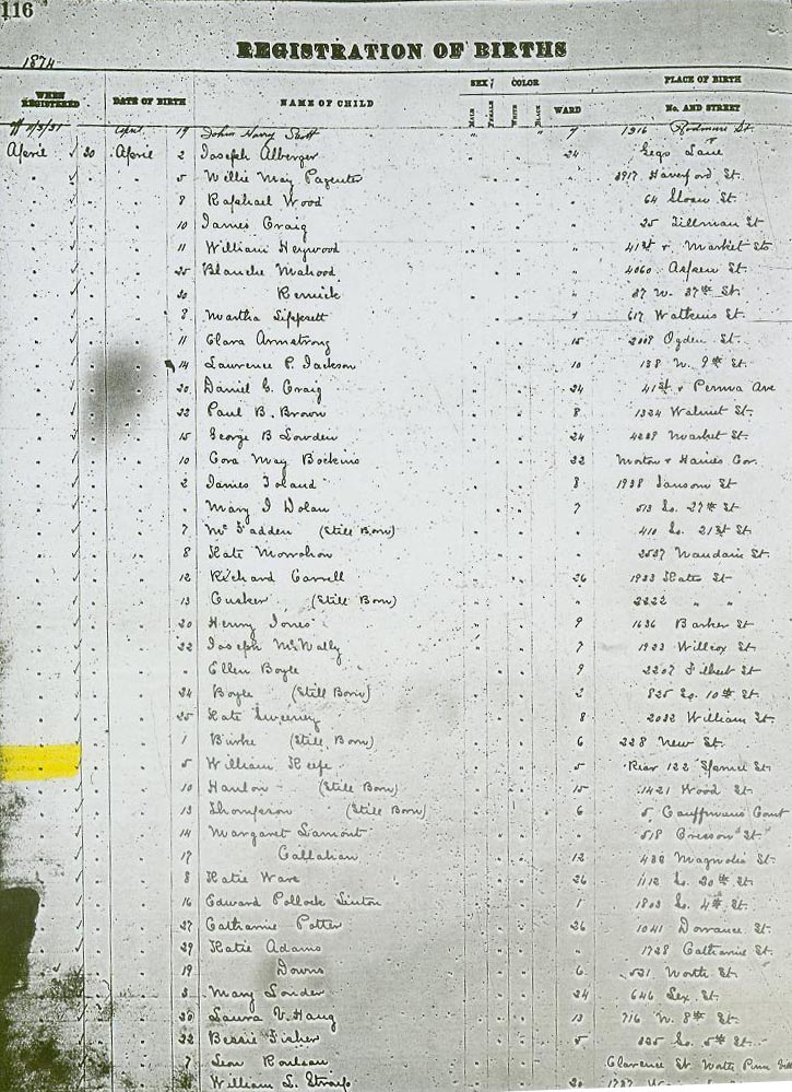 Baptized Sunday, April 12, 1874 - Philadelphia, PA