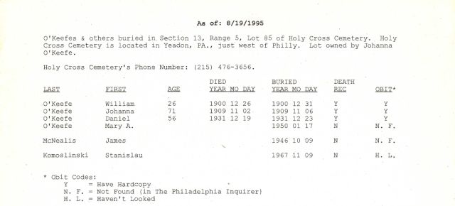 Larry's Great, Great Grandfather John O'Keefe's Families Page