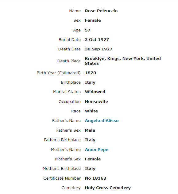 Larry's Sylvester and Rose (nee d'Alisso) Petruccio Family Page