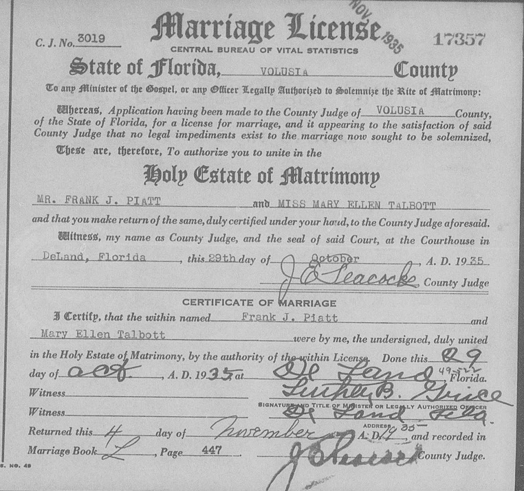 Francis "Frank" J. Piatt / Mary Ellen Talbott