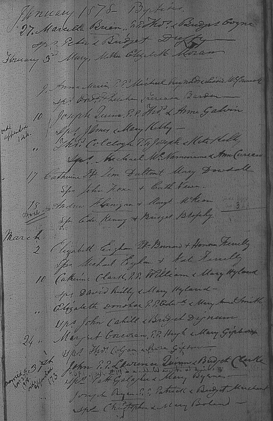 Note 1: Rochfortbridge Catholic Parish, Co. Westmeath - Microfilm 04172/03, Page 72