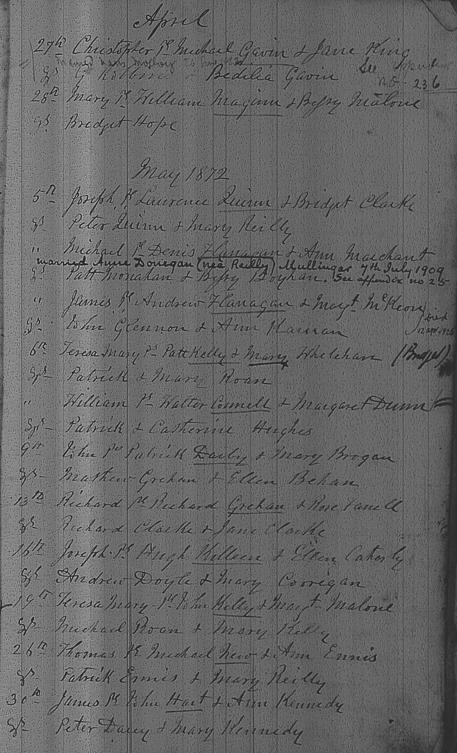 Note 2: The Joseph Quinn entry is the first entry after the "May 1872" heading.