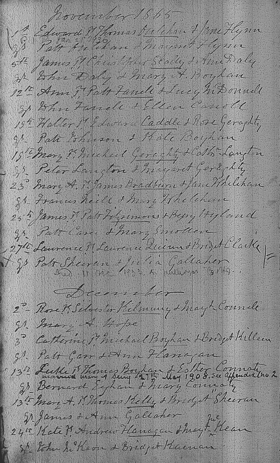 Note 2: The Laurence Quinn entry is the last entry before the "December 1865" heading.