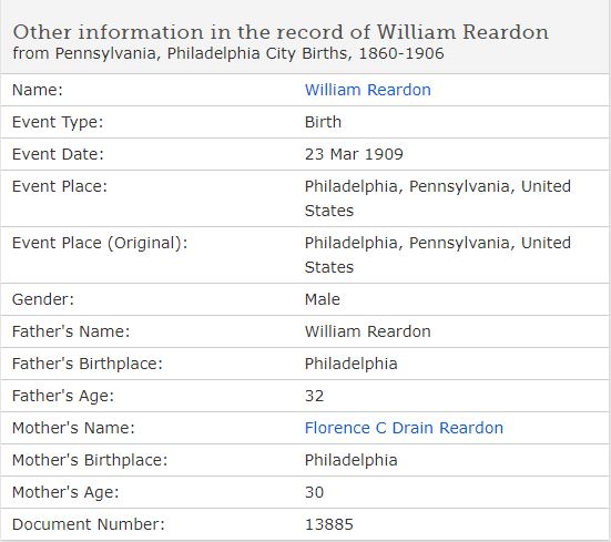William John Reardon Born March 23, 1909 Philadelphia, PA
