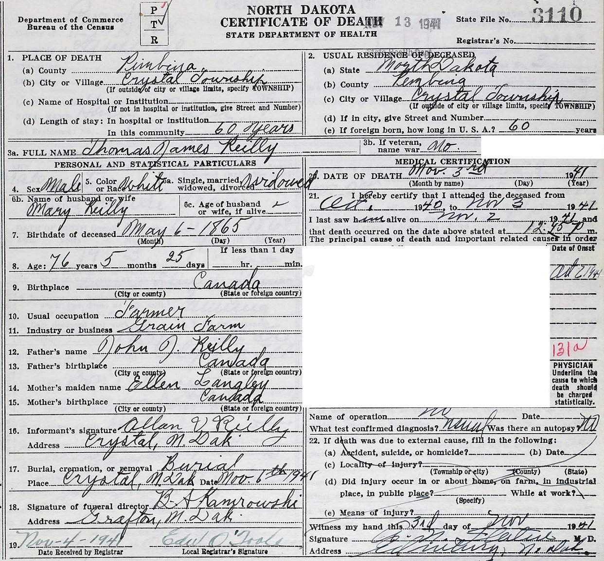 Larry's Thomas James and Mary Ann (nee Pinkerton) Reilly Family Page