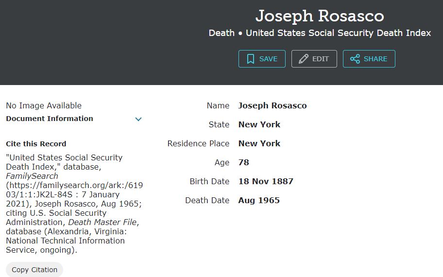 Go To: Larry's Joseph H. and Emily (nee Orlandi) Rosasco Family Page Larry's Family Names Page Larry's Genealogy Page Larry's Home Page