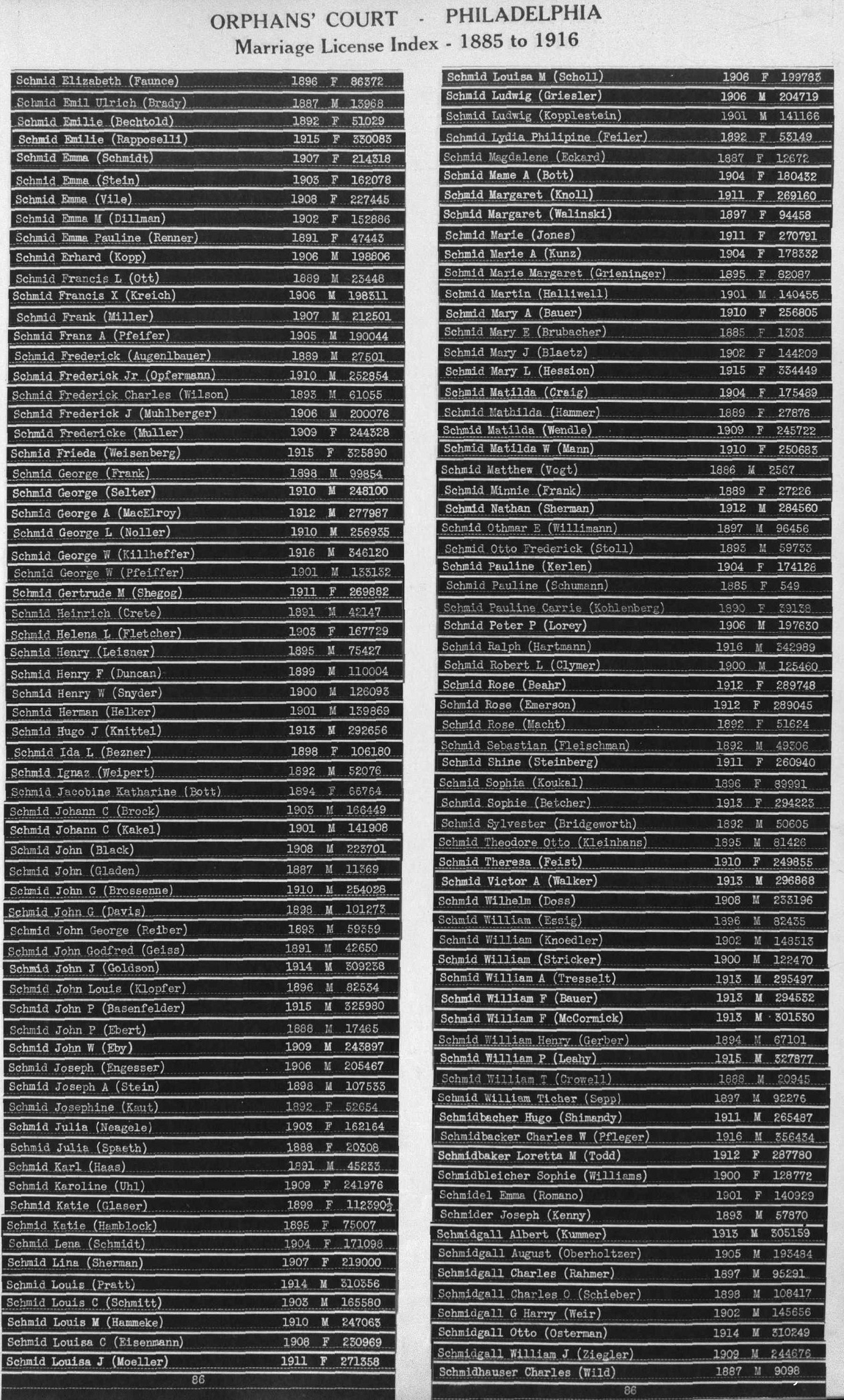 Joseph William Schmider Marriage License Index 1893 Philadelphia, PA
