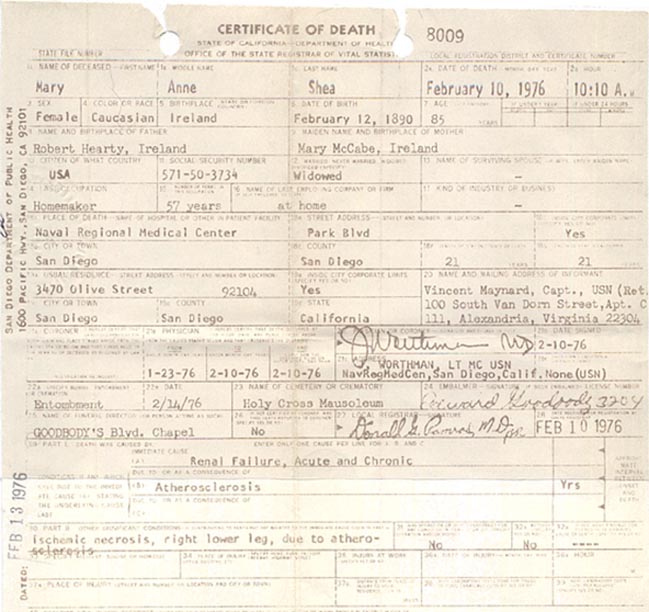 Larry's Robert and Mary (nee McCabe) Hearty Family Page