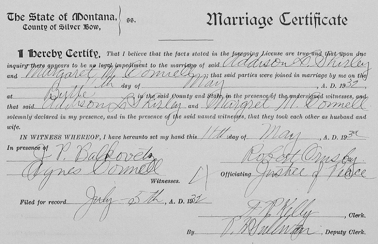Larry's Addison Lemuel and Margaret Mary (nee Connell) Shirley Family Page
