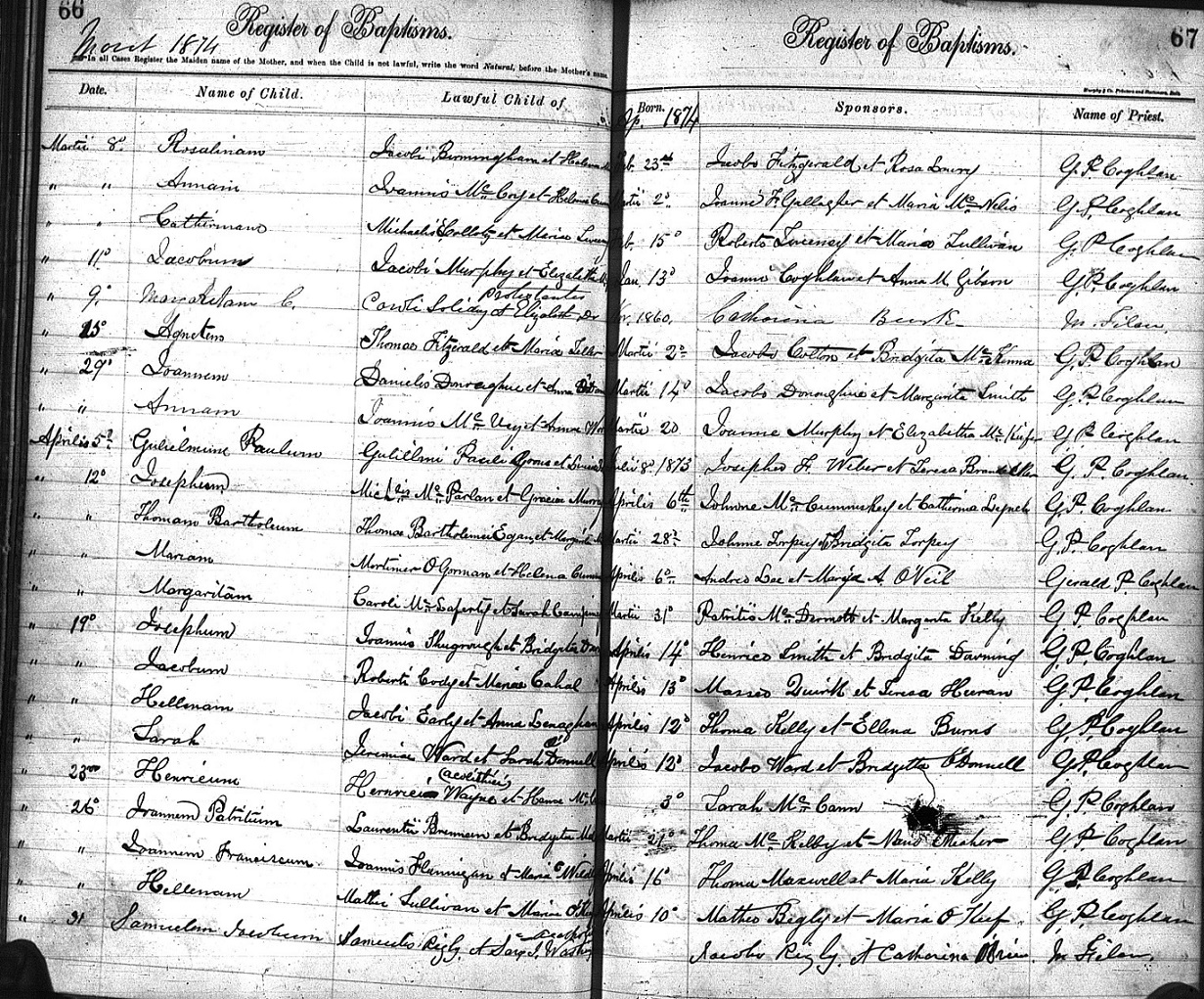 Baptized Sunday, April 26, 1874 - Philadelphia, PA