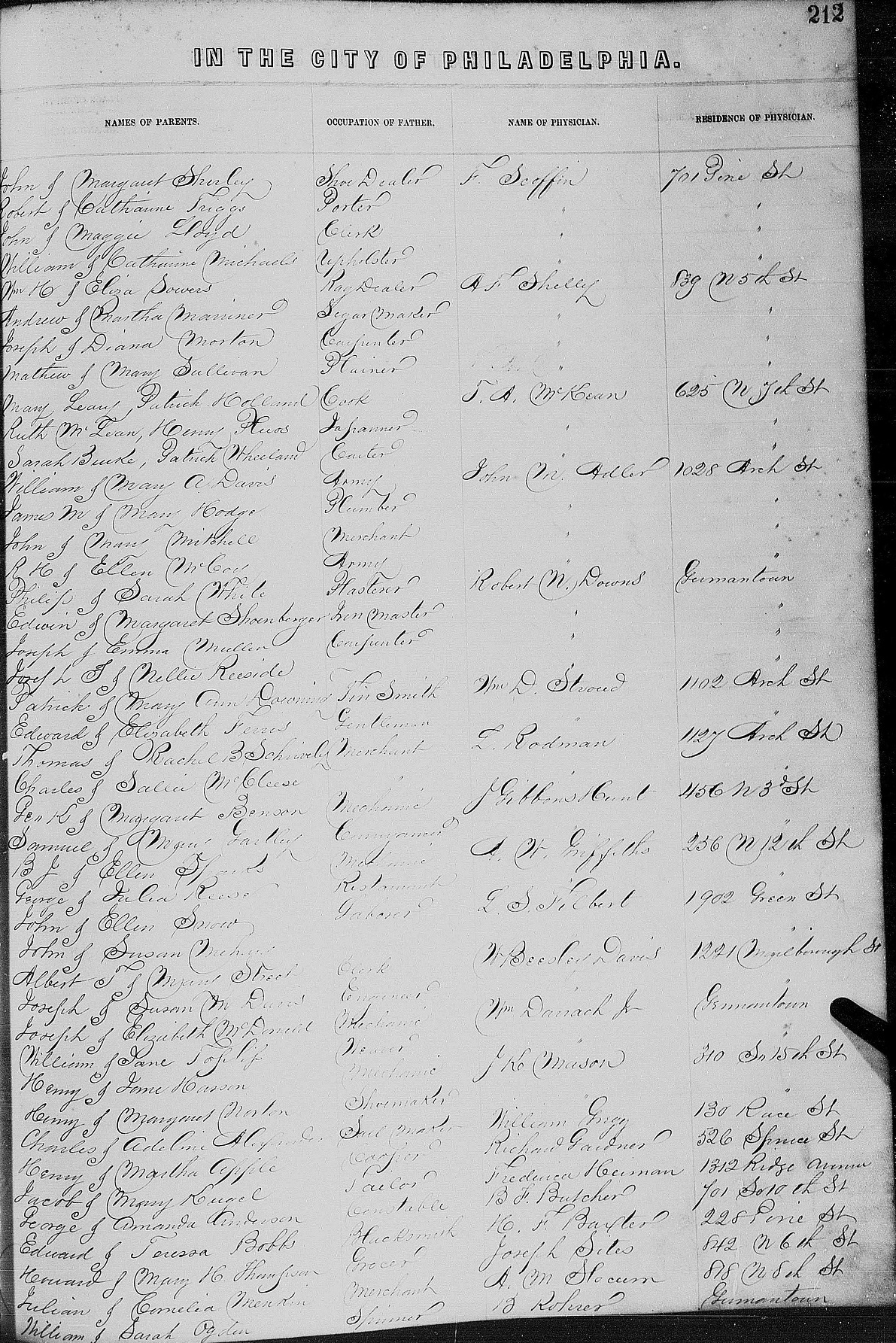 Note 1: John Sullivan's birth is recorded on page 212 of the 1865 Birth Register for the city of Philadelphia, PA.