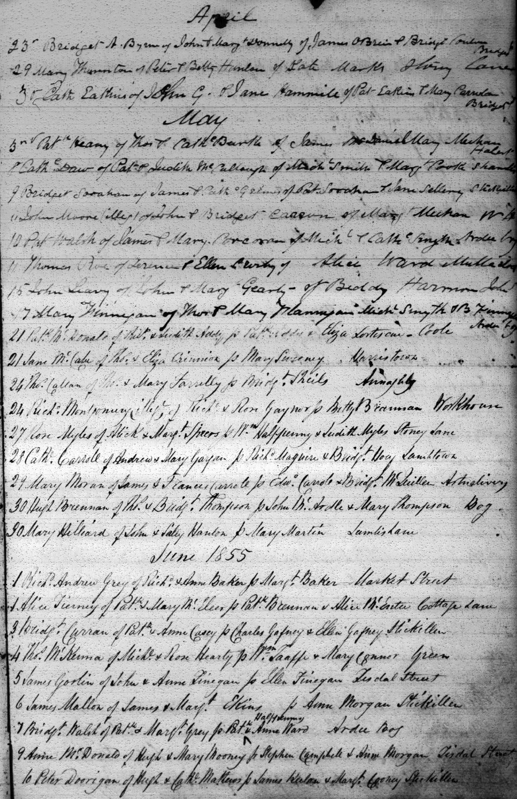 Alice Tierney Daughter of Patrick and Mary (nee McEleer) Tierney Baptized Jun. 1, 1855