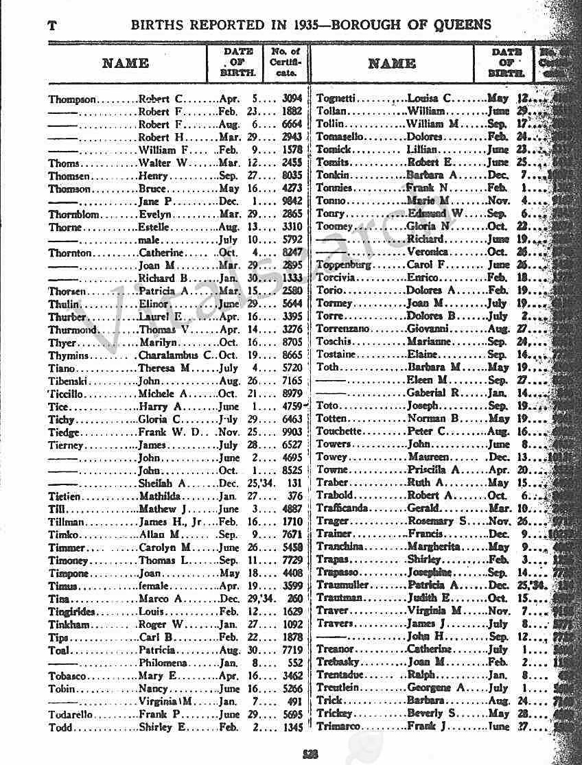 Note 1: The Sheilah Alicia Tierney entry is in the left column, about halfway down the page.