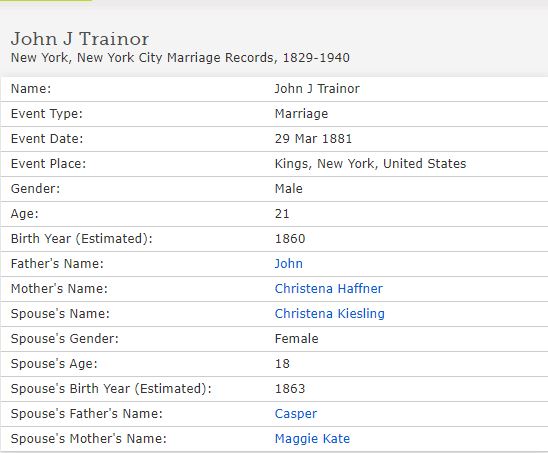 Larry's John and Christina (nee Kiesling) Trainor Family Page