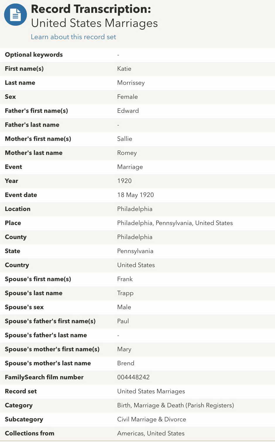 Larry's Paul and Mary (nee Brand) Trapp Family Page