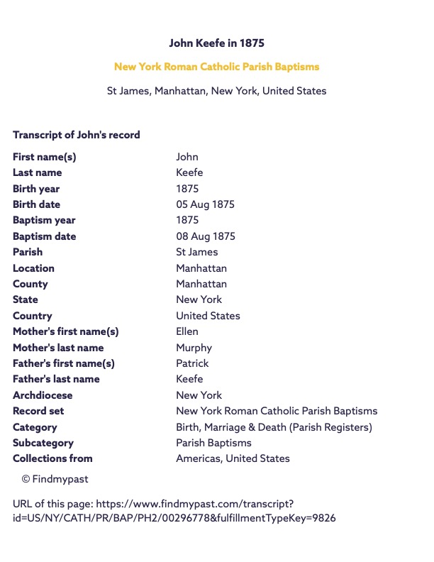 Larry's Patrick and Ellen (nee Murphy) Keefe/O/Keefe Family Page